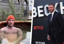 David Beckham üstsüz buz gibi soğuk suyun içine girdi!