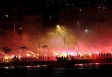 İzmir’in köklü kulüplerinden olan Göztepe, kuruluşunun 99. yıl dönümünü kutladı. Sarı-kırmızılı taraftarlar Güzelyalı Sahili’ne akın ederek büyük bir coşku yaşarken, yaktıkları meşalelerle geceyi aydınlattı.