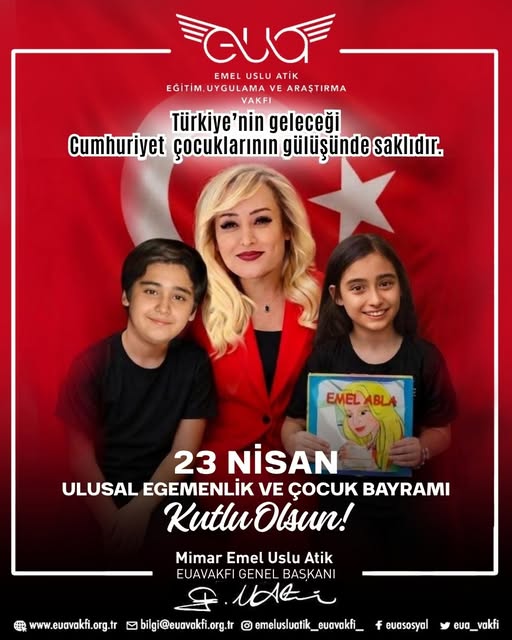 Ünlü iş kadını ve EUAVAKFI Başkanı mimar Emel Uslu Atik 23 Nisan Ulusal Egemenlik ve Çocuk Bayramı ile ilgili güzel bir yazı kaleme aldı.