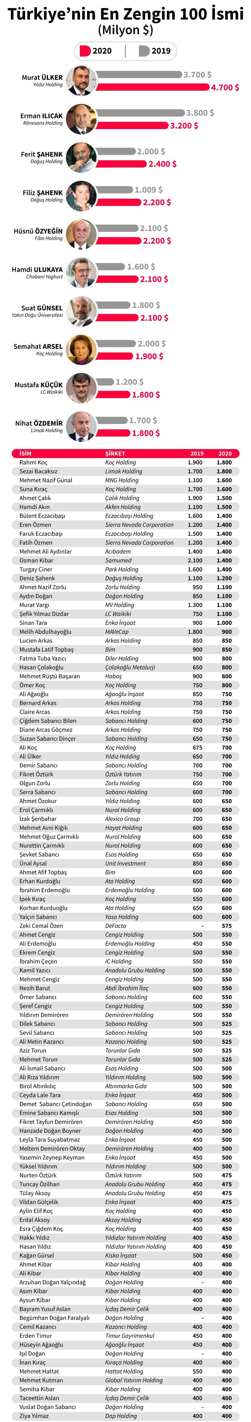 Sözcü, hazırladığı tabloda detaylarıyla Türkiye’nin en zengin 100 ismi ve şirketlerini sıraladı… İşte Türkiye’nin en zengin 100 ismi tam listesi: