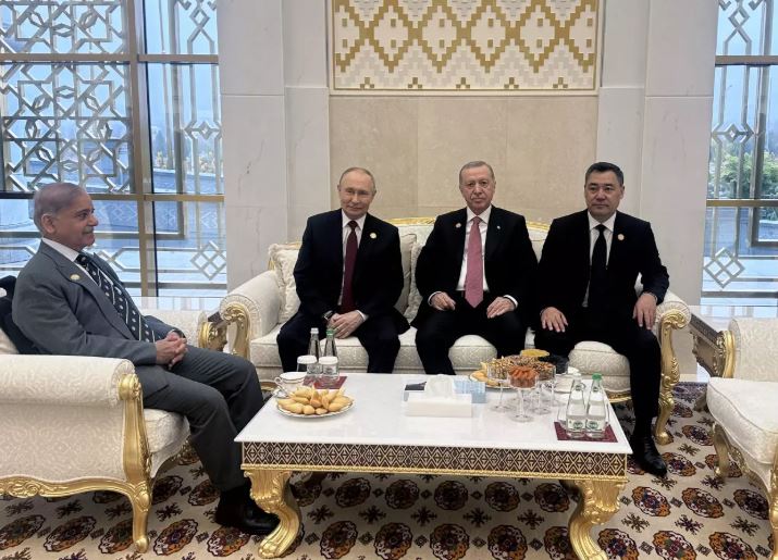Erdoğan, Aşkabat’ta, Rusya Devlet Başkanı Vladimir Putin, Pakistan Başbakanı Şahbaz Şerif ve Türkmenistan Devlet Başkanı Berdimuhamedov ile bir araya geldi.