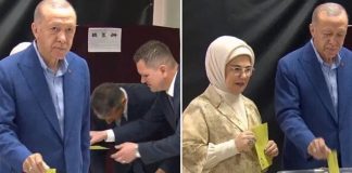 Cumhurbaşkanı ve Cumhur İttifakı Cumhurbaşkanı adayı Recep Tayyip Erdoğan, İstanbul’daki Saffet Çebi İlkokulu'nda Emine Erdoğan ile oy ver verdi.